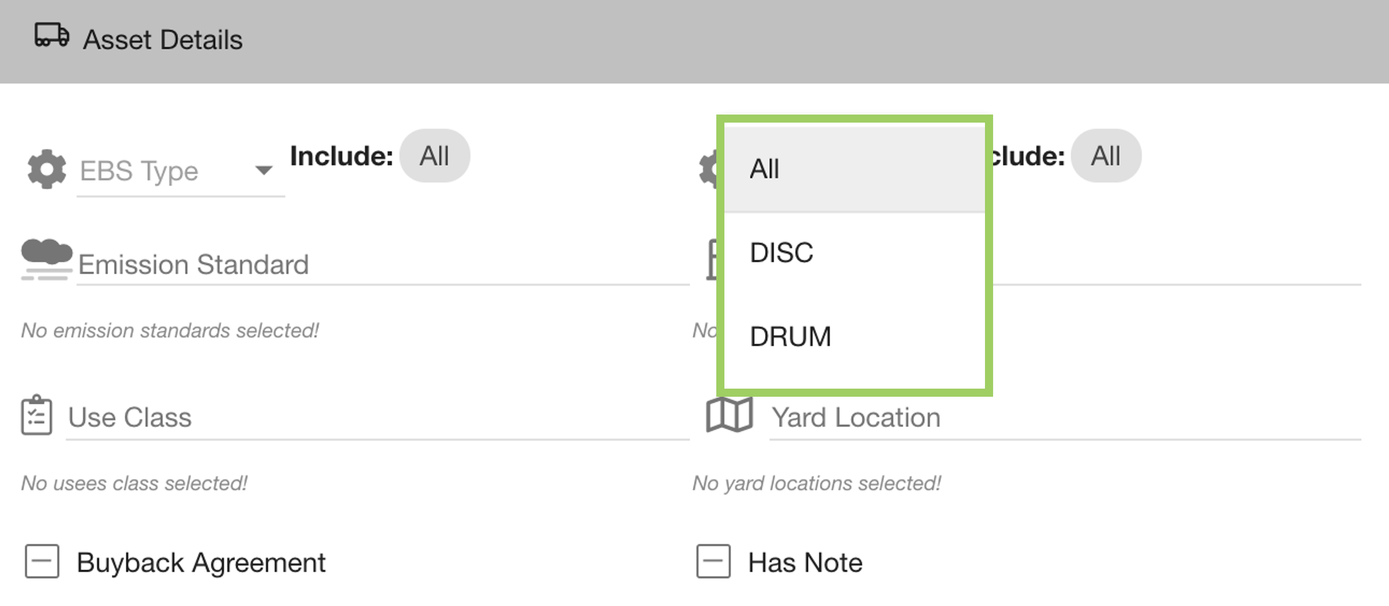 When a checkbox is empty (unchecked) the condition will not be applied. In this example, only assets without a note will be returned. | UNKNOWN ATTACHMENT |