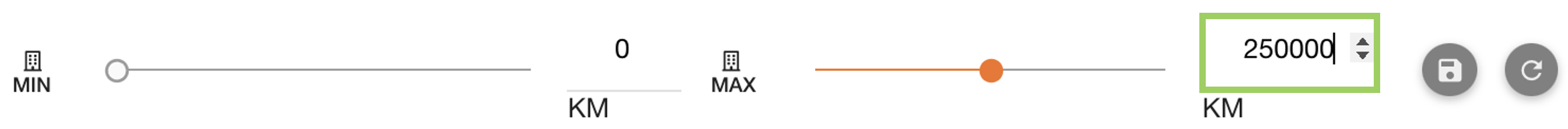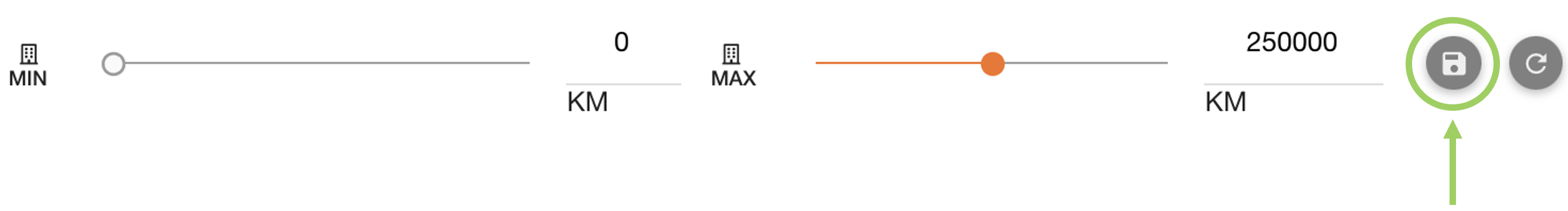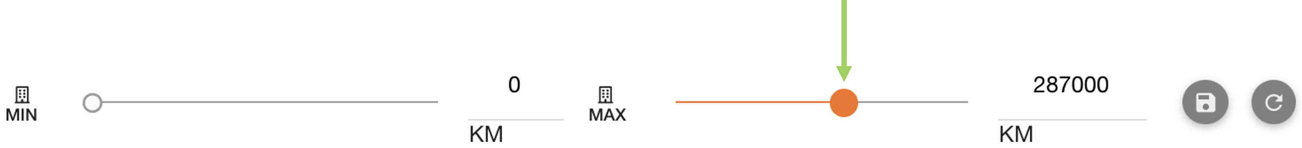 Slider filters are used to select a value from a range. This example asks for a MIN and/or MAX value to be selected from the filters.
