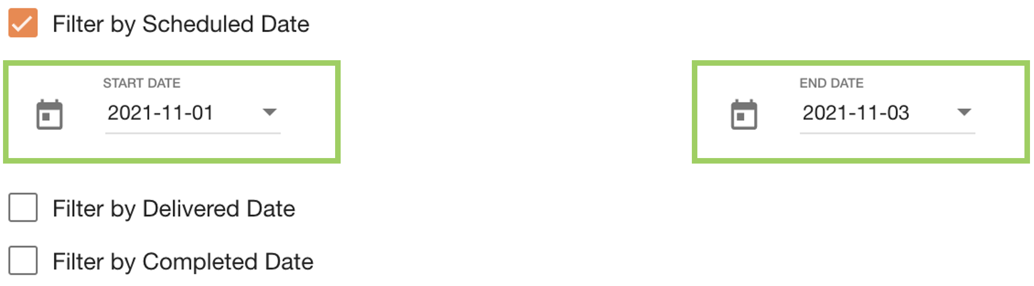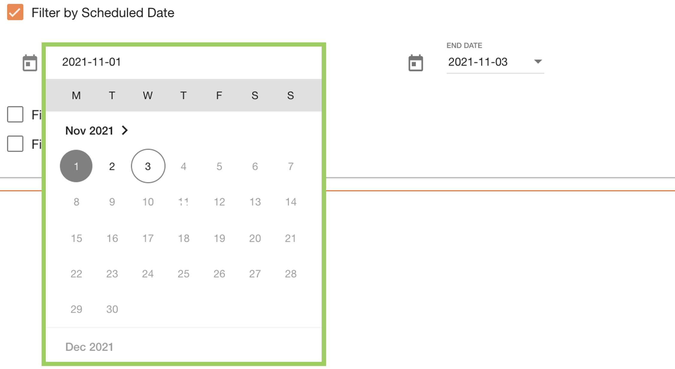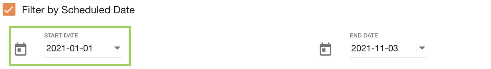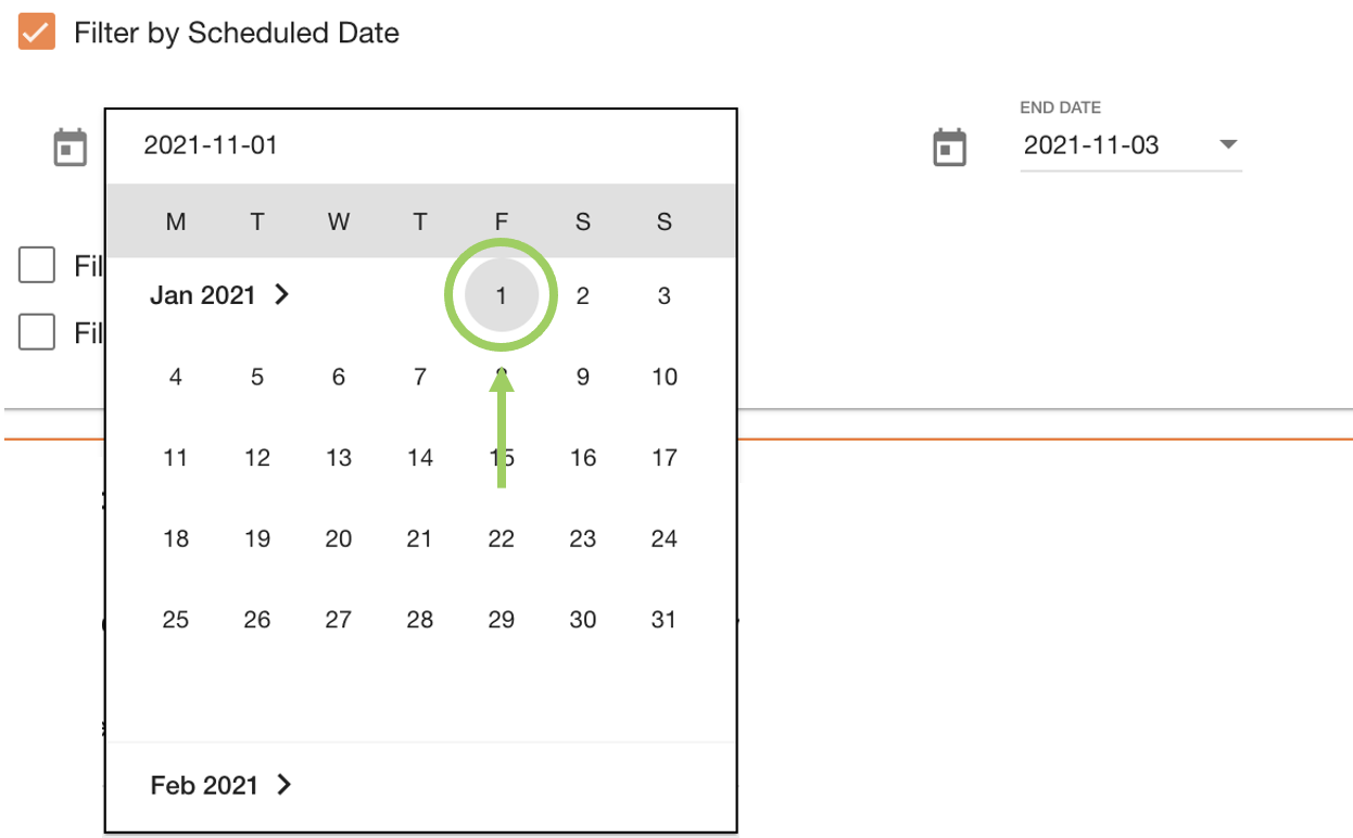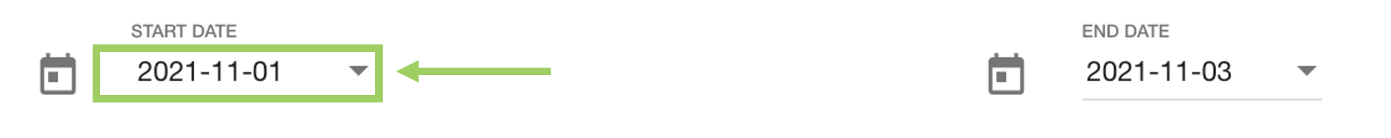 Date pickers are used to filter between two date ranges - a Start and End date. Some date pickers like in this example are accessible through checkboxes.